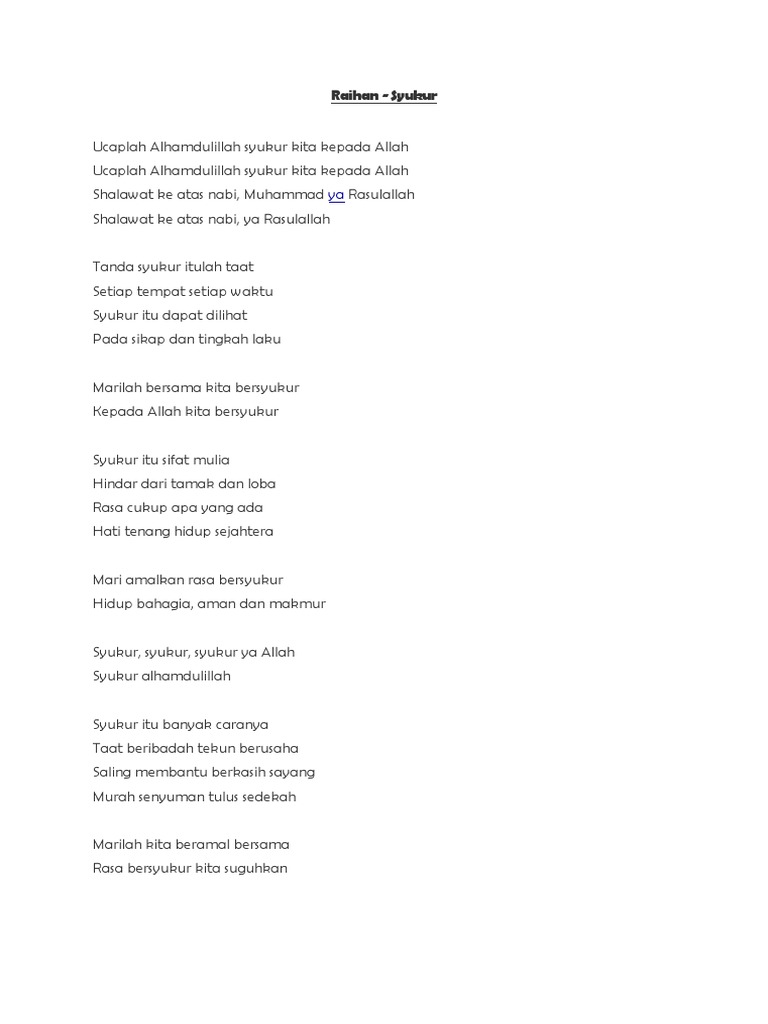Syukur Lyrics By Raihan Ucaplah Alhamdulillah Syukur Kita